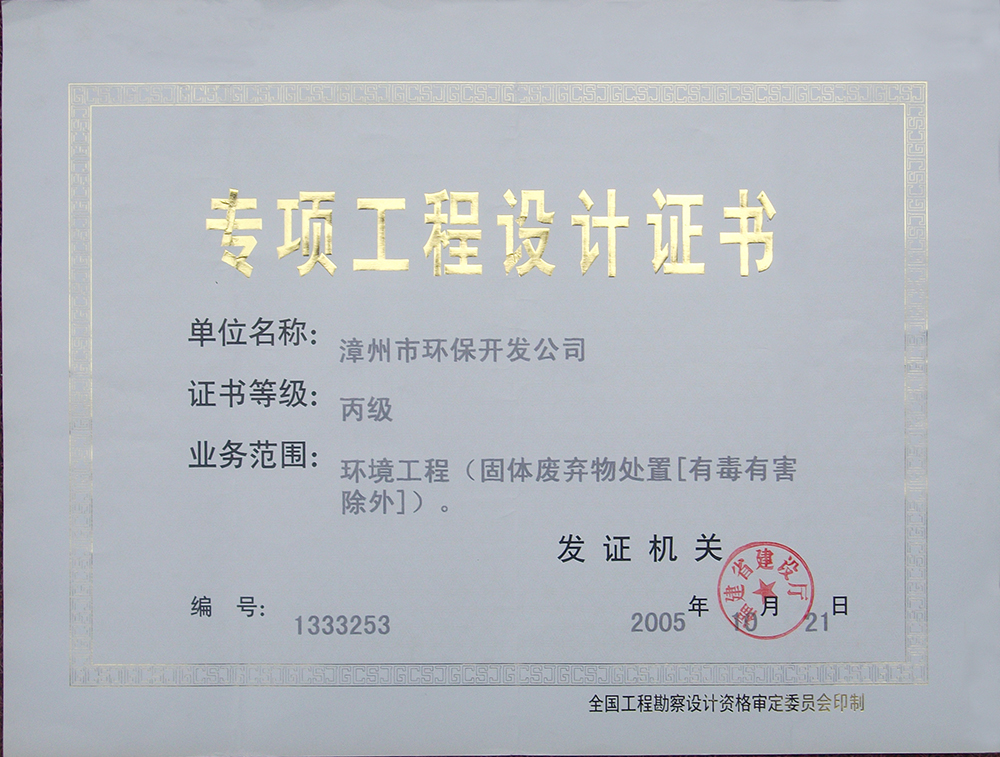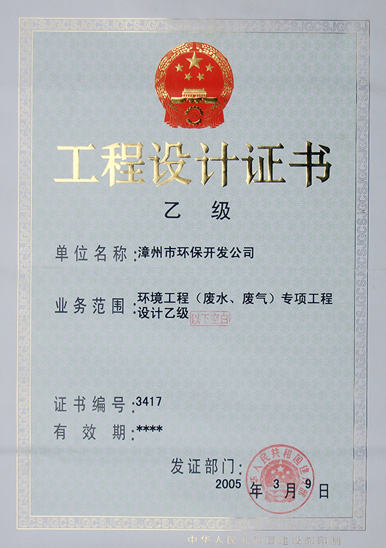 1、環(huán)境工程(廢水、廢氣)專(zhuān)項(xiàng)工程設(shè)計(jì)乙級(jí),證書(shū)編號(hào):3417;